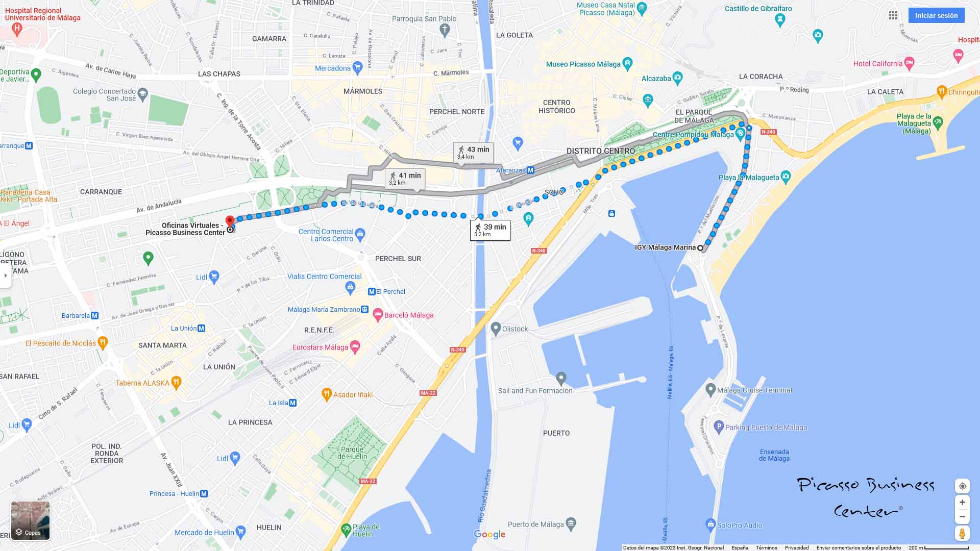 El nostre centre de negocis es troba a només 11 minuts amb cotxe del port d'oci de Malaga Marina dedicat als superiots, que disposa de 33 atracades per a embarcacions de fins a 180 metres d'eslora. I a 8 minuts en cotxe del port d'oci de Malaga San Andres Marina, que l'any 2027 disposarà de 600 amarratges per a embarcacions i iots de fins a 60 metres d'eslora.